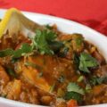 Cooked with fresh garlic and ginger, Indian lime. Fairly hot