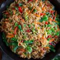 Stir-fried noodles with a colorful mix of fresh vegetables, seasoned...