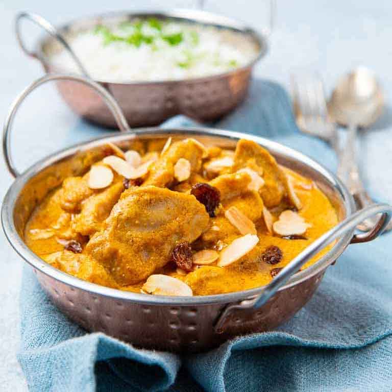 Cooked with coconut, almond and fresh cream. Mild dish.