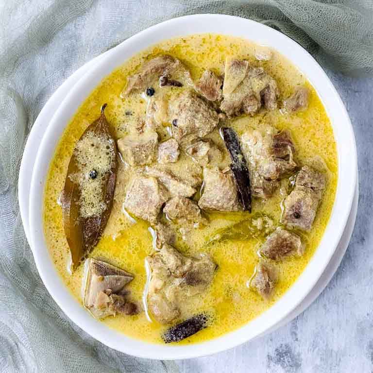 A muglai preparation that made with juicy chicken or lamb traditionaly slow cooking and extremely flavourfull in intensely fragrent , white gravy coconut cream, almond with exotic spice