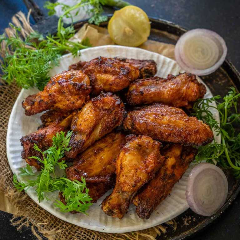 Chicken wings marinated in aromatic tandoori spices and grilled until smoky, juicy, and perfectly charred.